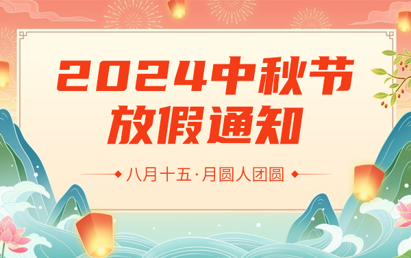 值此中國傳統(tǒng)佳節(jié)——中秋節(jié)來臨之際,我們向您致以最誠摯的節(jié)日祝福,感謝您長期以來對我們公司的支持與信任。?1.為慶祝中秋佳節(jié),根據(jù)國家法定假有關(guān)放假規(guī)定,并結(jié)合公司實(shí)際情況,現(xiàn)定于2024年9月15日... 查看更多>